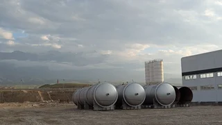 Aydarken şehrinde taş kırma ve beton karıştırma tesisi;