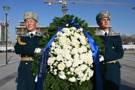 Bişkek, 1.12.25. /Kabar/. Kırgızistan'da Cogorku Keneş Milletvekillerinin erken seçimlerini izlemek üzere Kırgızistan'a gelen BDT Parlamentolararası Asamblesi Uluslararası Gözlem Heyeti'nin ziyareti kapsamında, başkentteki Zafer Anıtı'nda bir çiçek bırakma töreni düzenlendi.