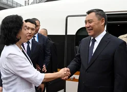 Sadır Caparov, Çin'in başkentine hızlı trenle geldi. Tren istasyonunun peronuna halı serildi ve Kırgız Cumhuriyeti ve Çin Halk Cumhuriyeti bayraklarıyla halk ve çocuklar onu karşılamak için sıraya girdi.