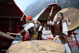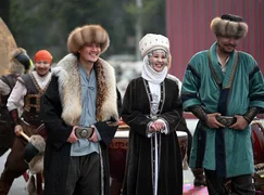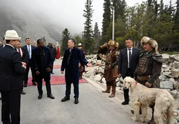 Konuklar ayrıca, ulusal bir av köpeği cinsi olan tayganları, av kartallarını ve şırdak adı verilen geleneksel keçe halıları da görme fırsatı buldular.