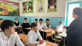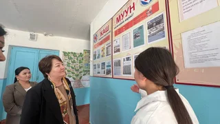 Bişkek, 09.04.25. /Kabar/. Kırgız Cumhuriyeti Eğitim ve Bilim Bakanı Dogdurkül Kendirbayeva, Celal-Abad bölgesi Toktogul ilçesi Torkent köyündeki A. Mamırov okulunu ziyaret etti.