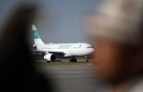 Kazakistan lideri, Manas Uluslararası Havalimanı'nda Kırgızistan Cumhurbaşkanı Sadır Caparov tarafından karşılandı.
