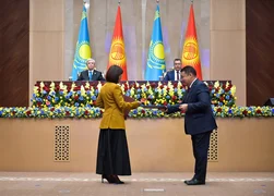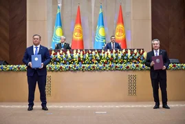 Kırgızistan Cumhurbaşkanı Sadır Caparov ve Kazakistan Cumhurbaşkanı Kasım-Comart Tokaev, Yüksek Devletlerarası Konsey'in "Kırgız Cumhuriyeti ile Kazakistan Cumhuriyeti Arasında 2025-2027 Kapsamlı İş birliği Planı'nın Onaylanması Hakkında" kararını imzaladılar.