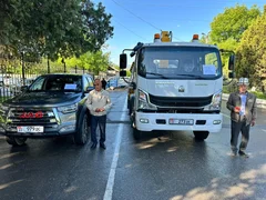 Yeni bir JAC T8 pikap kamyonu ve bir çekici aracın anahtarları, Batken bölgesindeki Cumhurbaşkanlığı yetkili temsilcisi Mamırcan Rahimov tarafından teslim edildi. Ekipmanların teslimi sırasında, bölge başkanı bunların şehir için önemini vurguladı.