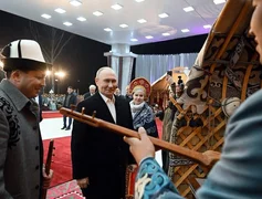 Cumhurbaşkanı Sadır Caparov, Devlet Başkanlarına Kırgız halkının saygı ve misafirperverliğinin simgesi olarak el yapımı paneller ve milli müzik aletleri hediye etti.