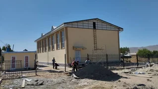 Bişkek, 05.14.25./Kabar/. Batken bölgesi Leylek ilçesi Muras köyü'nde yeni spor kompleksinin inşaatı tamamlanmak üzere.