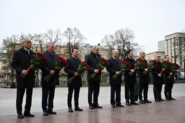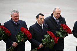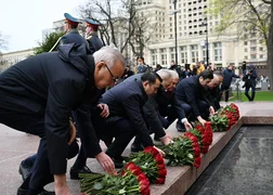 Marlen Mamataliev, Kolektif Güvenlik Anlaşması Örgütü üye ülkelerinden meslektaşlarıyla birlikte, Büyük Vatanseverlik Savaşı'nda hayatını kaybedenlerin anısına bir dakikalık saygı duruşunda bulundu.