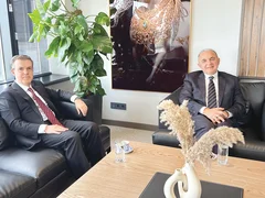 Türkiye’nin Bişkek Büyükelçisi Dr. Mekin Mustafa Kemal Ökem, imza töreni için Kırgızistan’da bulunan Ahmet Mücahid Ören’i, Orta Asya Investment Holding merkezinde ziyaret ederek projelerin son durumuyla ilgili bilgi aldı. Bölge için kritik öneme sahip yatırımlara her türlü desteği vereceklerini ileten Ökem, Türkiye’nin, Türk Devletleri Teşkilatı çatısı altında Kırgızistan’a ilgisinin artarak devam edeceğini vurguladı.