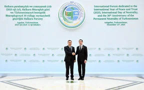 Bişkek, 12.12.25. /Kabar/. Kırgızistan Cumhurbaşkanı Sadır Caparov, Uluslararası Barış ve Güven Yılı, Uluslararası Tarafsızlık Günü ve Türkmenistan'ın daimi tarafsızlığının 30. yıldönümü vesilesiyle düzenlenen "Barış ve Güven: Sürdürülebilir Bir Gelecek İçin Amaç Birliği" uluslararası forumuna katılmak üzere Türkmenistan’a geldi.