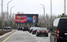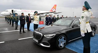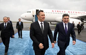 Cumhurbaşkanının uçağı Astana Uluslararası Havalimanı'na indi. Sadır Caparov'u Kazakistan Başbakanı Olcas Bektenov karşıladı.