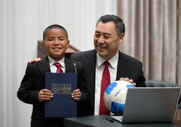 Bişkek, 17.12.25. /Kabar/. 17 Aralık'ta Kırgızistan Cumhurbaşkanı Sadır Caparov, Oş Bölgesi'nin Kara-Kulca İlçesi'ndeki Koo-Çatı köyünde bulunan Aydın-Köl ilkokulu'nda dördüncü sınıf öğrencisi Nurzaman Almazbekov'u kabul etti.
