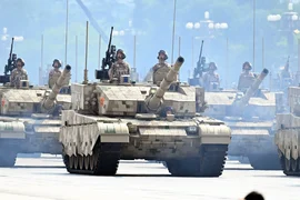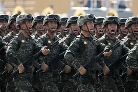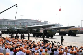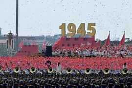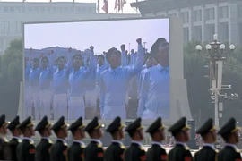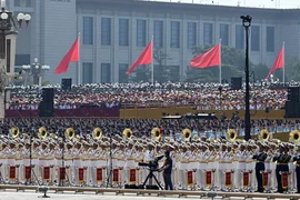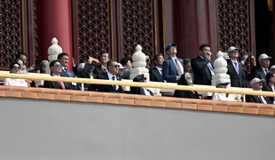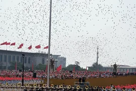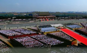 Daha sonra liderler, Tiananmen Meydanı'ndaki geçit törenine katılmak üzere gözlem güvertesine geçti.