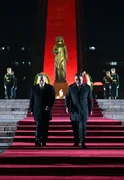 Askeri orkestra eşliğinde muhafızlar anıta çelenk bıraktı, ardından Devlet Başkanları eğilerek şehitleri andı.