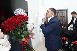 Bişkek, 23.01.26. /Kabar/. Kırgızistan Cumhuriyeti Bakanlar Kurulu Başkan Yardımcısı ve Ulusal Güvenlik Devlet Komitesi Başkanı Kamçшbek Taşiev, üçüz çocuklu genç bir aileye iki odalı bir dairenin anahtarlarını teslim etti.