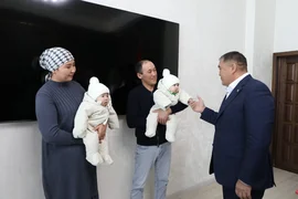 Kamçıbek Taşiev, genç ailenin üçüz bebeklerinin doğumunu kutlamak ve ülkenin demografik durumunu iyileştirmek amacıyla, Bişkek'in merkezinde iki odalı bir dairenin anahtarlarını hediye etti.