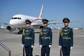 Havalimanında her iki ülkenin ulusal bayrakları dalgalandırıldı ve bir onur kıtası oluşturuldu.